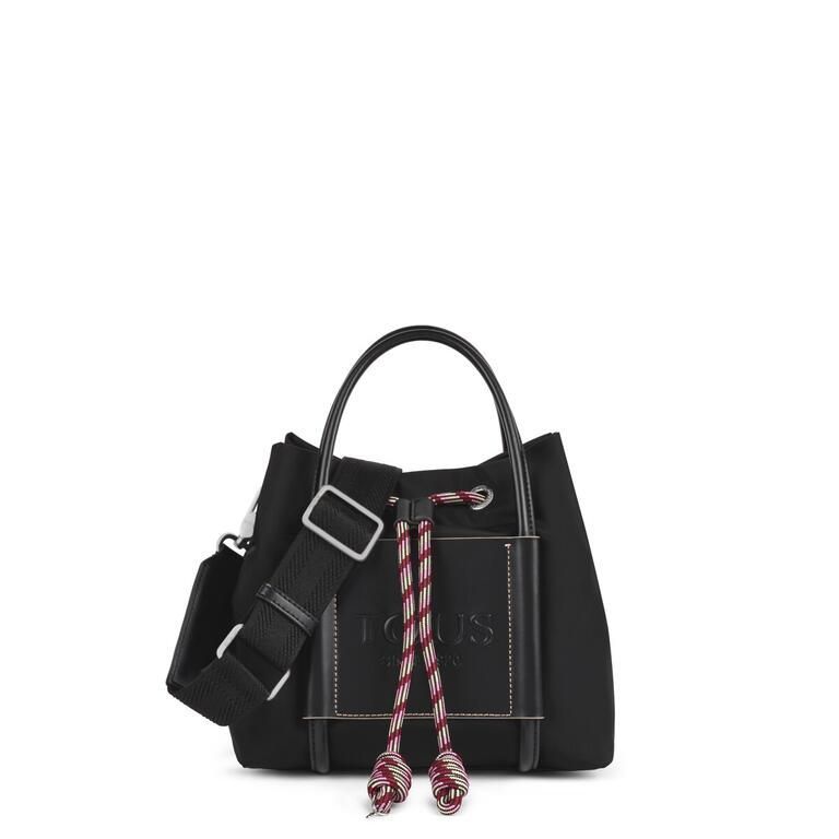 Bolso saca Tous de la colección Empire Soft de nylon reciclado en negro. Cierre con cordon ajustable. Asas de mano y correa larga ajustable i extraíble. Bolso cuenta con 2 bolsillo exteriores planos.