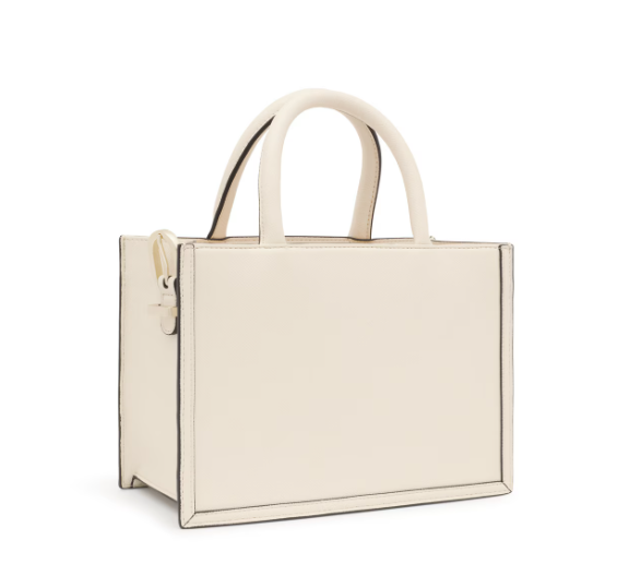 Bolso shopper mediano Amaya TOUS Brenda de poliuretano en color beige. Cierre de cremallera. Bolsillo interior con cierre de cremallera. Asas fijas de hombro y asa bandolera ajustable y desmontable.
