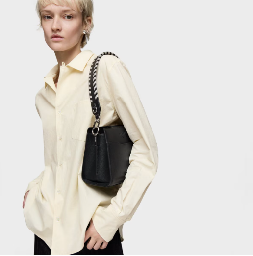 Bolso shopper pequeño Audree Saffiano de poliuretano en color negro. Cierre magnético. Dos compartimentos separados. Bolsillo interior y bolsillo exterior abiertos. Dos asas de hombro desmontables.