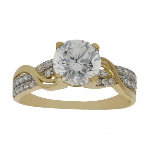 Sortija fabricada en oro amarillo de 18 kilates con circonitas.