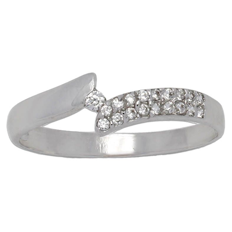 Sortija fabricada en oro blanco de 18 kilates y circonitas.