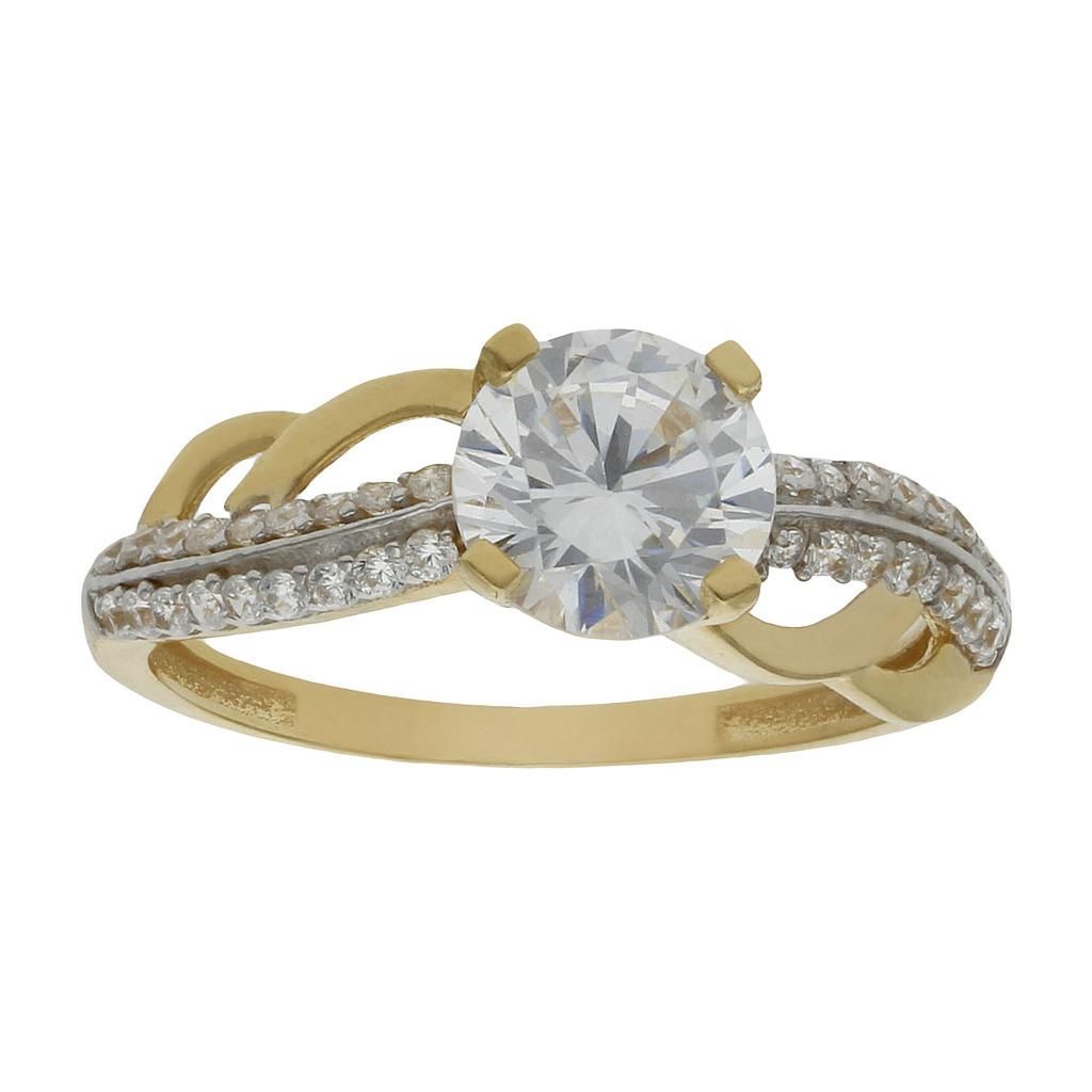 Sortija fabricada en oro amarillo de 18 kilates y circonitas.