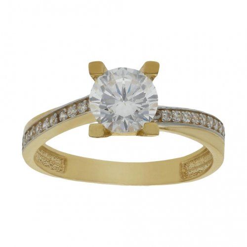 Sortija fabricada en oro amarillo de 18 kilates con circonitas.