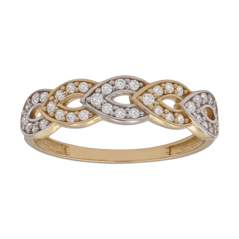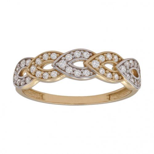 Sortija de oro bicolor fabricada en oro de 18 kilates y circonitas. Acabado en brillo.