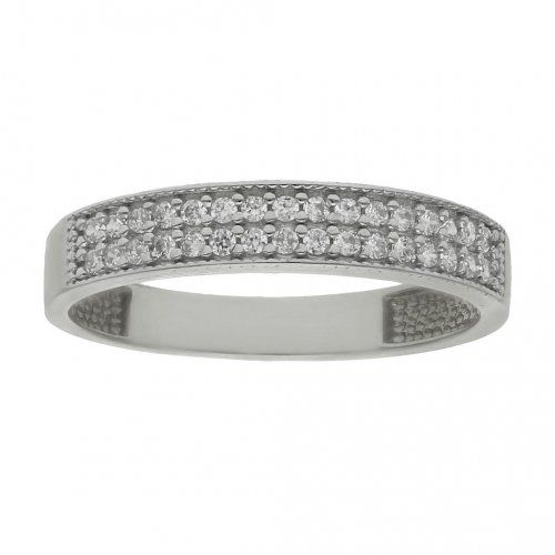 Sortija fabricada en oro blanco de 18 kilates y circonitas.