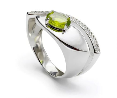 Anillo de Plata de Ley 925 ml. con aventurina y circonitas.